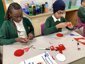 Year 6 have been busy producing a beautiful Poppy Art Installation. The children learned new textile skills by creating their own poppies using red felt.