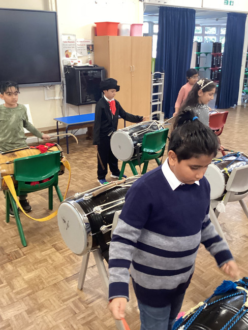 The sounds of the dhol drums echoed through the school as children joined in the rhythms. Creative hands were busy making clay diva lamps, Diwali cards, and stunning rangoli patterns using bright colours and designs.