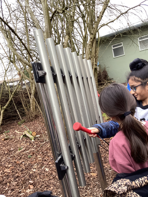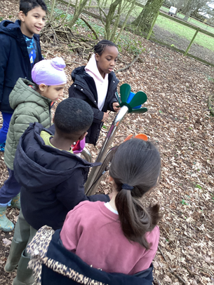 The children then followed a musical trail, listening carefully to different sounds and clues along the way. They enjoyed exploring the area and working together to find each stop. Afterwards, they had the chance to feed the sheep, which was a highlight for many. The children were gentle and excited as the sheep came close to eat from their hands.